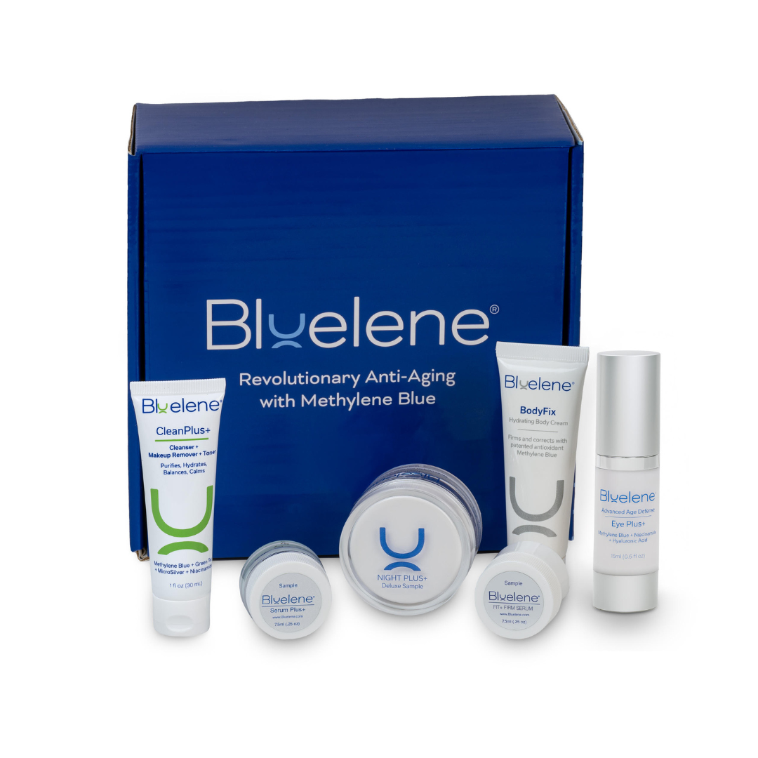 Discover Everything Bluelene. This fun set includes our deeply nourishing Night Plus+ Cream, the first night cream and Vitamin C serum combination; Fit+Firm Serum, a new innovative serum to address skin deflation; CleanPlus+, cleanser toner and makeup remover in one; Age-Defense EyePlus+ to smooth, plump and lift the eye area; SerumPlus+, a multi-function skin booster designed to revitalize, hydrate and texturize skin; and HandPlus+, our Advanced Age-Repair for hands and body.